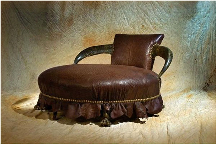 كل تصميماته و ديكور اته مقتبسه و مستوحيها من الطبيعة الافريقية و ذلك يتضح فى الخامات من الأخشاب و القرون و العاج و الجلود و الصدف و جلود التماسيح و الالوان من اللون البنى و العاجى و الابيض و الاسود و الأصفر الأوكر و قد أستخدم بعض المعادن التى تعطى ثقل لتصميم ديكوراته واثاثه مثل البرونز و الفضة التى أضافت طابع الفخامة و العظمة و يعتبر من أغرب أشكال الأثاث و الديكورات التى تتمتع بجرأه عالية فى الخامات الطبيعية و فكر الديكور ذاته و لكم هذه الصور